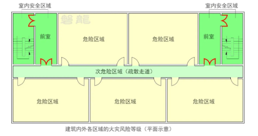 (2)次危险区域:疏散走道;